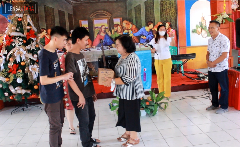 MANADO, LensaUtara.id – Aksi bantuan sosial diiringi dengan ibadah syukur dilaksanakan Jemaat Kolom 3 GMIM Kinamang Kaiwatu, bersama anak didik Sekolah Luar Biasa ( SLB ) A – Bartemeus Malalayang I Timur, Sabtu (4/12).