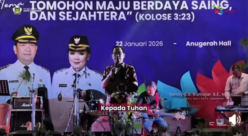 Ibadah KKR dengan tema “Bekerja untuk Tuhan Menuju Tomohon Maju, Berdaya Saing dan Sejahtera” (Kolose 3:23) tersebut dilaksanakan pada Kamis, 22 Januari 2026, di Anugerah Hall Tomohon.