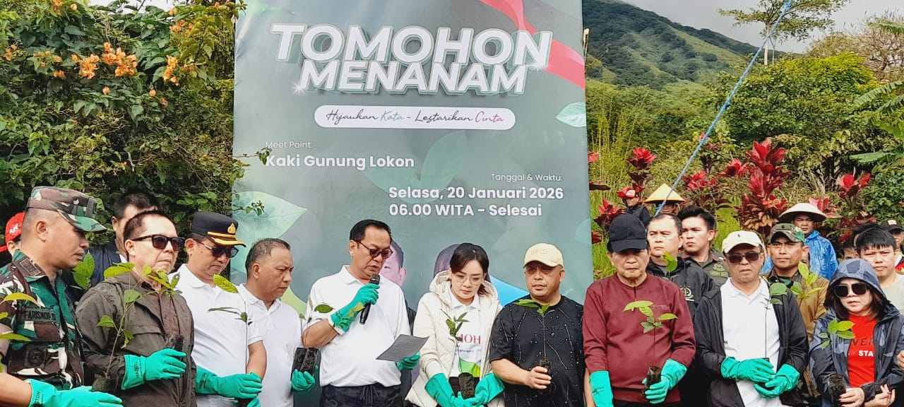 Tomohon, LensaUtara.id – Dalam rangka Hari Ulang Tahun (HUT) Kota Tomohon ke-23, Pemerintah Kota Tomohon bersama DPRD melaksanakan penanaman pohon di kawasan cagar alam kaki Gunung Lokon, Selasa pagi, (20/01/2026).