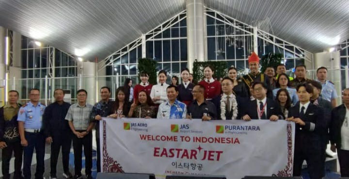 Manado, LensaUtara.id–Penerbangan perdana Maskapai Eastar Jet dari Incheon, Korea Selatan (Korsel) ke Kota Manado Sulawesi Utara resmi dimulai, Senin (27/10/2025) pagi.