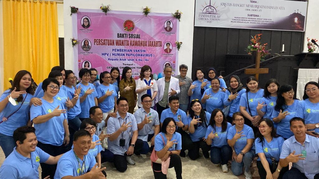 Tomohon, LensaUtara.id — Sebanyak 500 warga menerima vaksin Human Papillomavirus (HPV) gratis dalam bakti sosial kolaborasi Pemerintah Kota Tomohon dan Persatuan Wanita Kawanua Jakarta, Senin (13/4/2026), di Kompleks Menara Alfa Omega, halaman parkir Gereja GMIM Sion Tomohon.