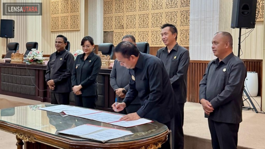 Selanjutnya, Wali Kota Tomohon bersama pimpinan DPRD Kota Tomohon menandatanganani Propamperda tentang APBD Kota Tomohon Tahun Anggaran 2026 dan Penetapan Program pembentukan peraturan daerah kota Tomohon tahun 2026.