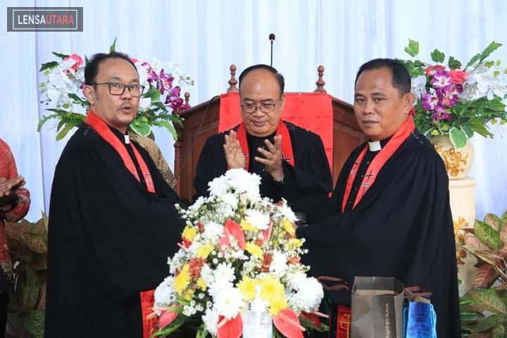 Serah terima tugas pelayanan Ketua BPMJ, Pengutusan dan Penerimaan Pendeta itu, dari Pdt. Jandri Guster Rojers, M.Th, kepada Pdt. Timmy Mandagi, M.Th.