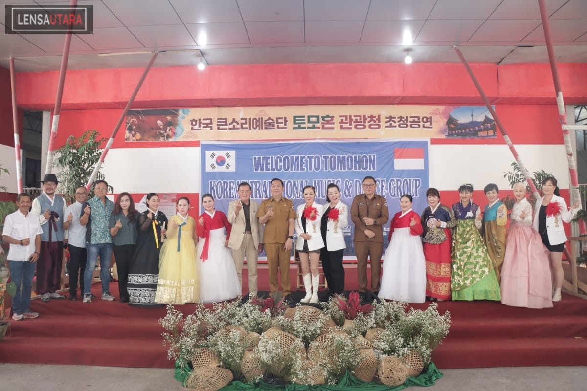 Tomohon, LensaUtara.id – Tarian seni tradisional dan dance dari Korea Selatan ditampilkan di hadapan Walikota Tomohon Caroll Senduk, pada Selasa (16/12-2025), di Anugerah Hall.